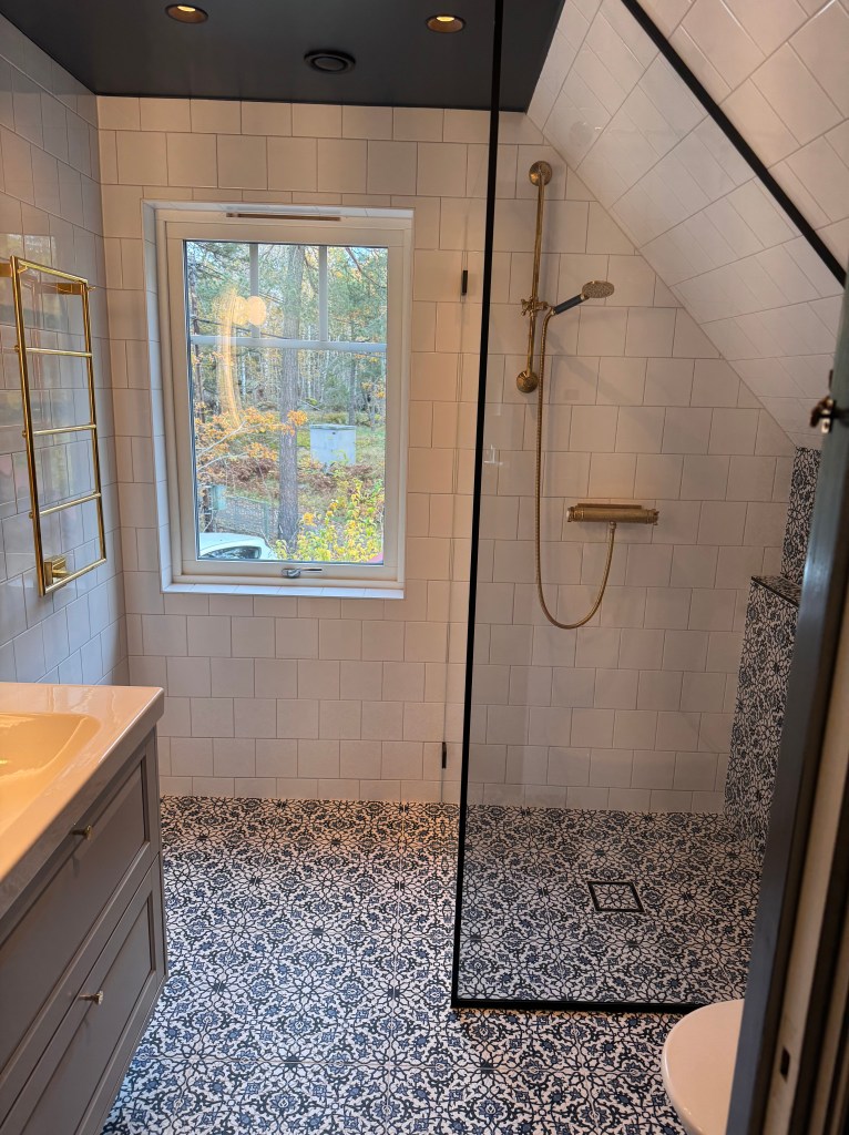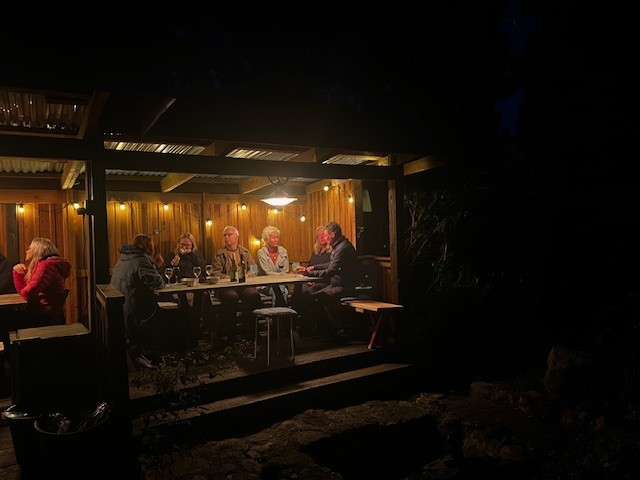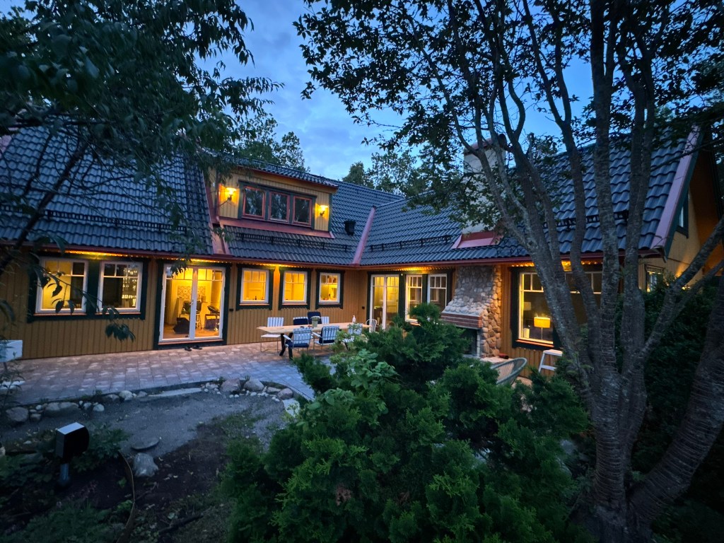 Kväll med gäster i vår ute areaDelat badrum i boutique stil, allt nytt !
