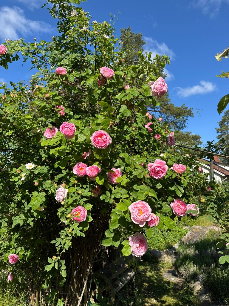 Blomsterprakt i vår trädgårdGemensamt trinettkök, kaffemaskin, vattenkokare, micro och kyl finns att tillgåGrythyttan grupp med krusbär, ta en kaffe, njut!